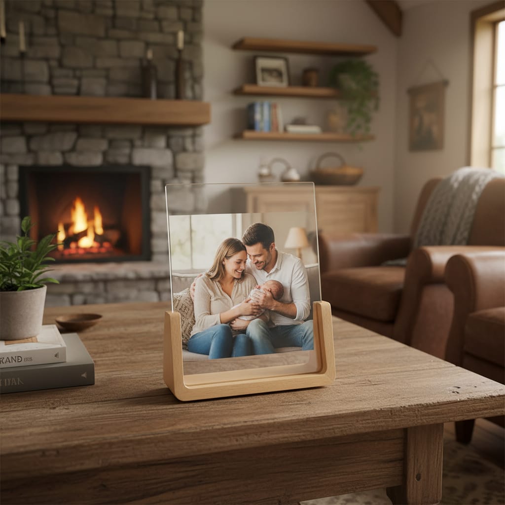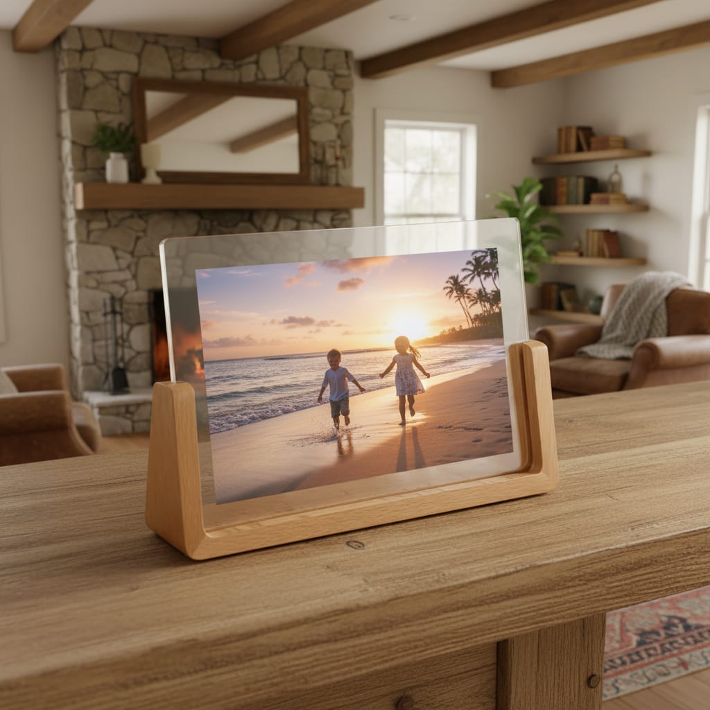 מסגרת אקריל עם מעמד עץ טבעי – לשלב טבע ויוקרה בזיכרונות שלכם!
